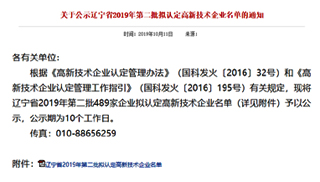 我公司進(jìn)入遼寧省第二批擬認(rèn)定高新技術(shù)企業(yè)名單