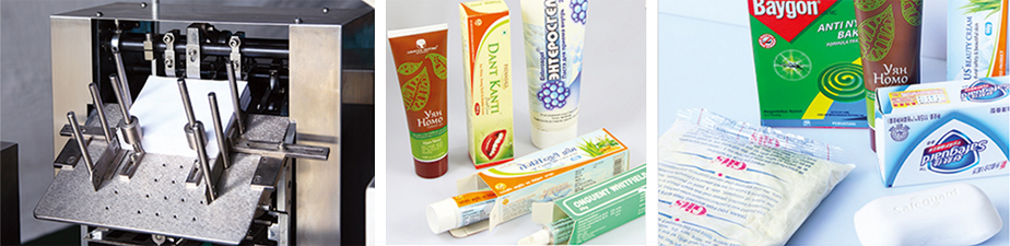 該機(jī)型適用于軟膏類物品(牙膏、藥膏)及軟包裝類物品的自動(dòng)裝盒。其工作過程為牙膏或物品的傳送;藥品說明書的傳送(可進(jìn)行1至4折的自動(dòng)折疊);紙盒自動(dòng)成形與傳送,將物料連帶折好的說明書同時(shí)裝入紙盒內(nèi);并自動(dòng)完成打批號(hào)、兩端紙舌封口等繁雜額封裝過程(可配熱熔膠機(jī))。